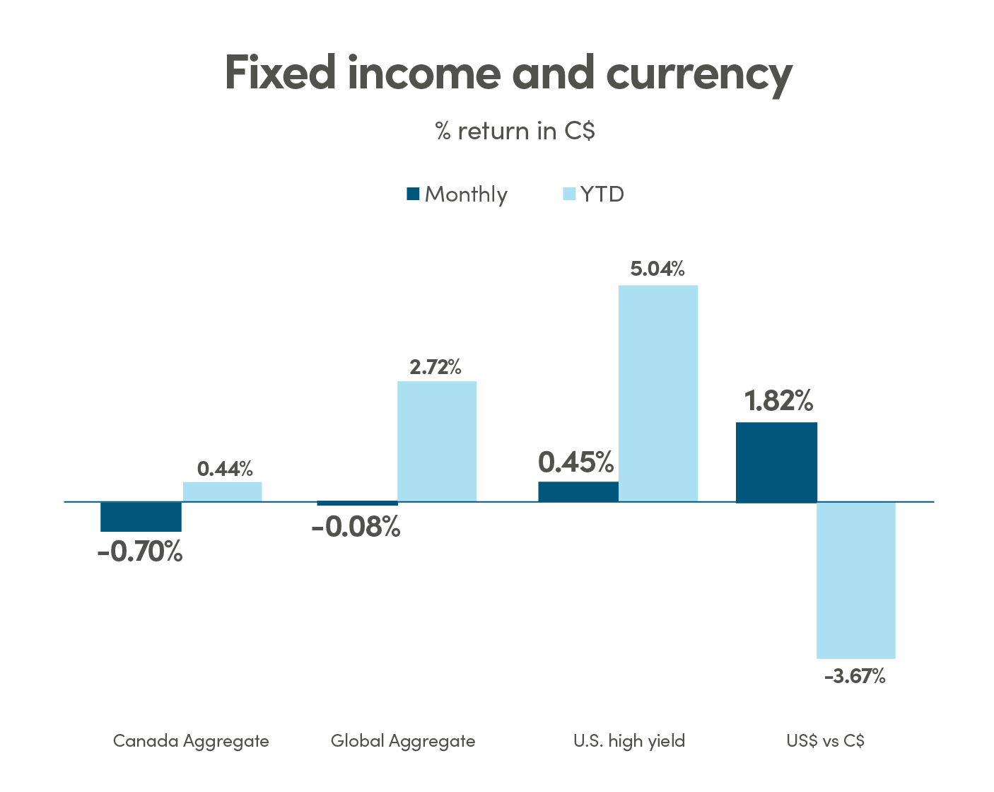 Canada Aggregate: Bloomberg Barclays Canada Aggregate Bond Index; Global Aggregate: Bloomberg Barclays Global Aggregate Bond Index; U.S. High Yield: Bloomberg Barclays U.S. High Yield Index.
